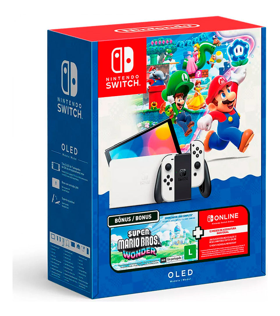 Console Nintendo Switch Oled 64GB Edição Super Mario Bros Wonder + 12 meses Nintendo Online