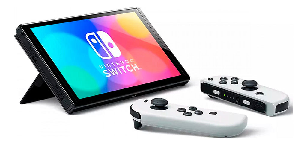 Este bundle tem tudo que você precisa para começar suas aventuras, incluindo um console Nintendo Switch – Modelo OLED 64GB com controles Joy-Con branco.