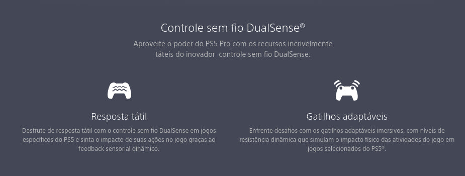 *Recurso disponível somente em jogos de PS5 selecionados que foram aprimorados para o PS5 Pro em comparação com o PS5. Os recursos aprimorados do PS5 Pro variam de acordo com o jogo.