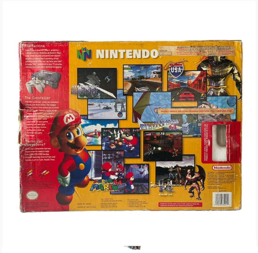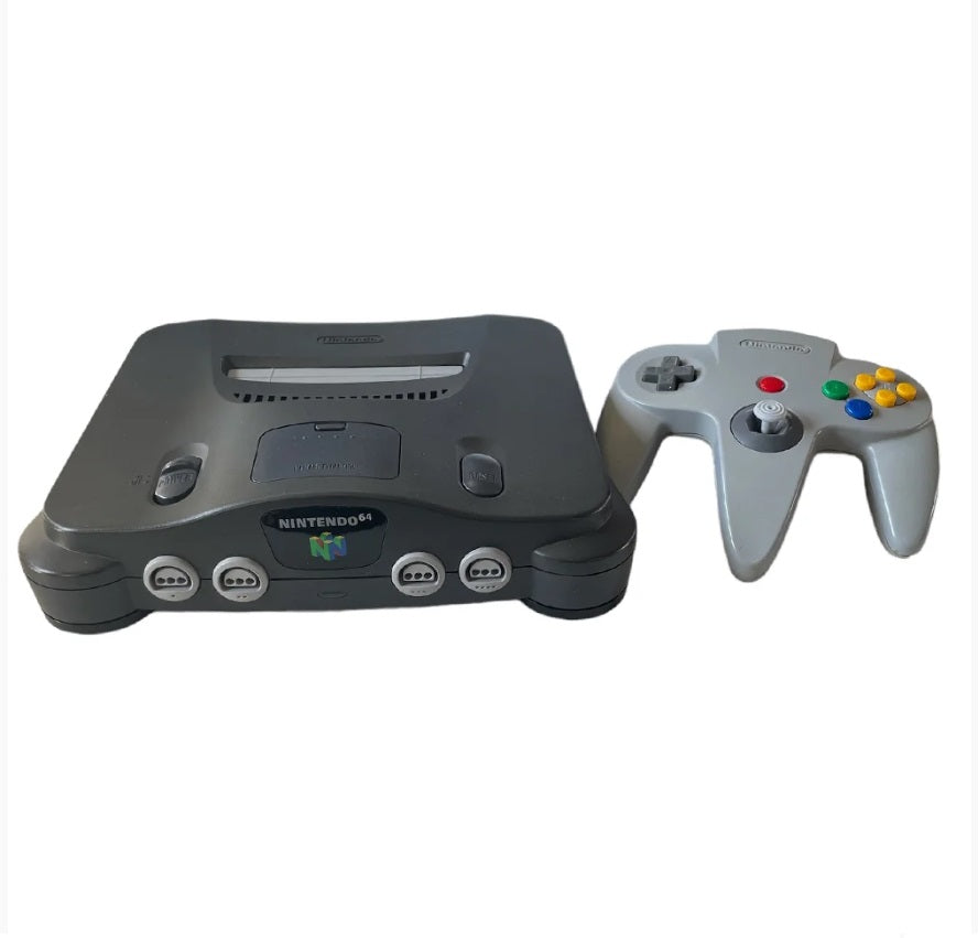 O N64 trouxe também um controle inusitado em forma de M possuindo 3 manetes, e um lugar para colocar o Rumble Pak que fazia o controle vibrar e o Transfer Pak, que permitia a transferência de informações entre os jogos do 64 com jogos de Game Boy. Com o console você pode reviver ou jogar pela primeira vez os grandes sucessos como Super Mario 64, PilotWings, The Legend of Zelda: Ocarina of Time, entre vários outros.
