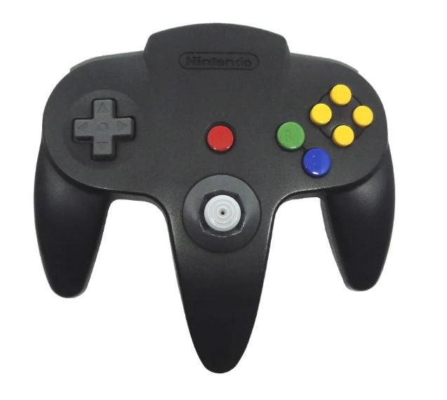 O N64 trouxe também um controle inusitado em forma de M possuindo 3 manetes, e um lugar para colocar o Rumble Pak que fazia o controle vibrar e o Transfer Pak, que permitia a transferência de informações entre os jogos do 64 com jogos de Game Boy. Com o console você pode reviver ou jogar pela primeira vez os grandes sucessos como Super Mario 64, PilotWings, The Legend of Zelda: Ocarina of Time, entre vários outros.